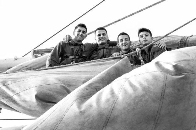 With four hundred and sixteen souls on board, including one hundred and twenty-eight students from the first class of the Naval Academy of Livorno, future officers in training, this voyage serves primarily as their baptism with the sea. The faces of my crew, the finest in the world, are etched within the pages of this volume: salt, sweat, tears, sun, smiles, fatigue, melancholy, and joy.