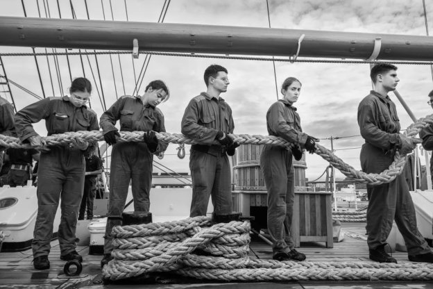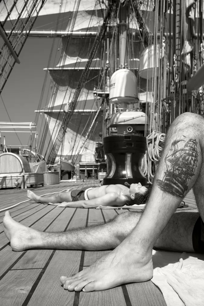 Carlo Mari, always in love with the marine world, inspired by photographers who traveled on commercial sailing ships of the early 1900s, embarked last summer for 45 long days – 23 of which were spent crossing the Atlantic – on the Vespucci ship to emotionally and spectacularly portray the life on board of the crew and cadets, the soul of the most beautiful ship in the world, creators and guardians of its magnificence.