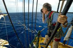 Twenty-two days at sea, punctuated by shifts, general manoeuvrings of sails, the whistles of our crew, collective orders over the intercom, meals in the mess, and astronomical observations—the rhythm of life aboard the vessel.